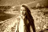 young woman walking outdoors at fall season