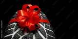 black isolation rubber tire, on the grey backgrounds in a bow for christmas