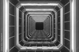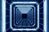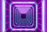 80s retro abstract technology blue purple background tunnel light. Corridor 3d rendering.