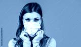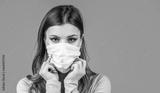 Girl Wearing Protective Mask. Woman wearing surgical mask for corona virus. Woman wearing an anti virus protection mask. Woman wearing medical face mask