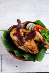 Ayam Bakar Bumbu Rujak is a Javanese food made from chicken which uses a red basic spices then grilled.