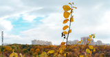 Fall panoramic landscape of fall forest on a hill with selective focus