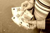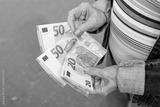 Hands of a senior citizen with euro notes, senior citizen counts her money