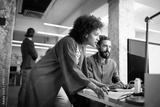 Programmers cooperating brainstorming at information technology company
