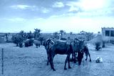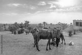 MERZOUGA, MOROCCO, 28 AUGUST 2018: Camels waiting for their ride in the Sahara at the camp at sunset