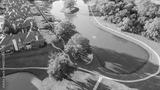 Top view twin lake with little island near park front apartment building in suburbs Dallas, Texas, USA