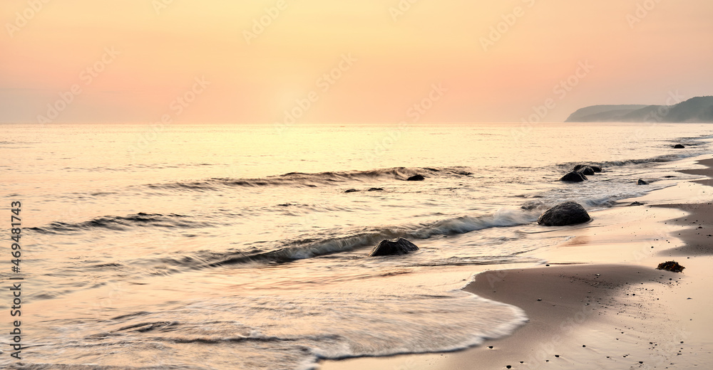 Empty beach in Miedzyzdroje at sunrise, Poland.