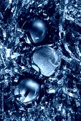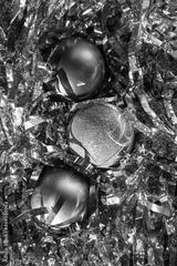 Christmas tree decoration balls in silver metallic tinsel foil fringe close up