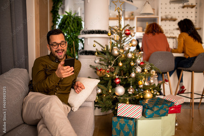 Young people have fun during the New Year holidays. Concept of the Christmas holidays.