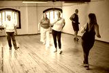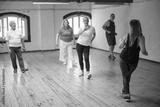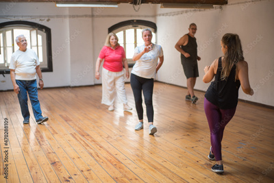 Group of seniors learning dance steps. Dance group of adults learning moves. Dance, hobby, healthy lifestyle concept