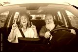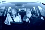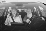 Photo of lovely senior married couple have fun listen music ride car vehicle together romantic trip outdoors