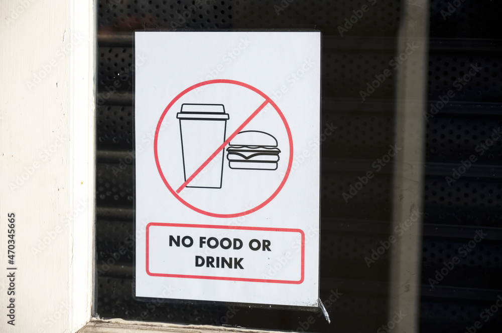 No food or drink allowed sign on entrance door