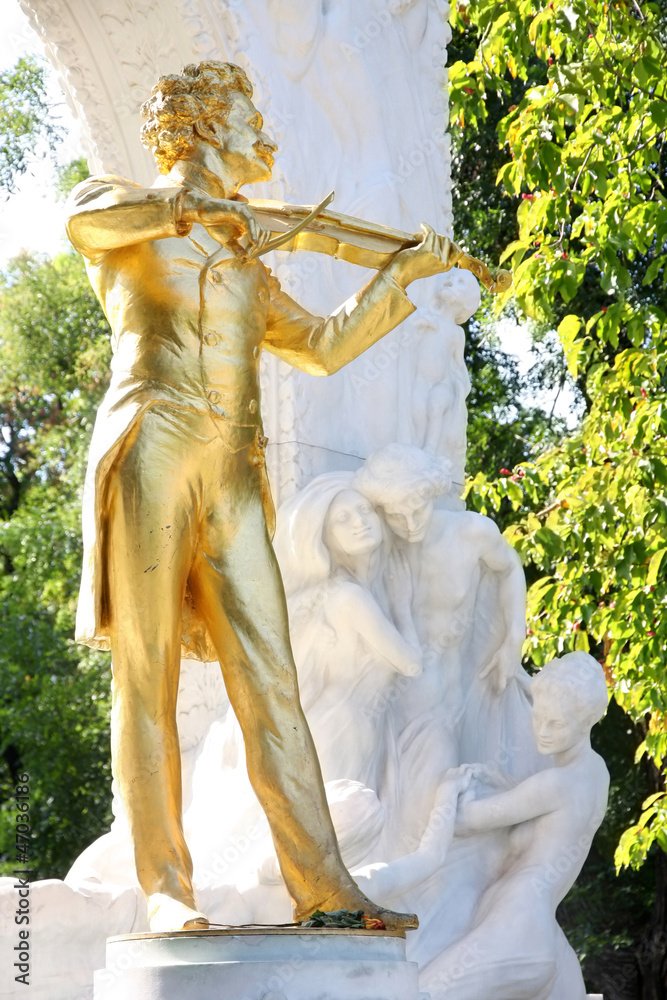 The statue of Johann Strauss in Stadtpark, Vienna, Austria