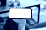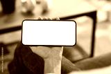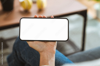 Hand holding smartphone mockup of blank screen. Take your screen to put on advertising.