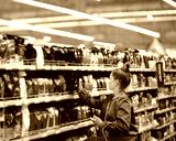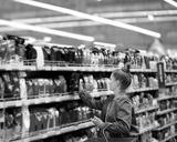 Woman choosing a dairy products at supermarket.choosing coffee in supermarket