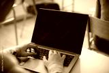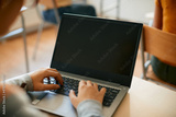 Close-up of student using laptop during computer class at high school.