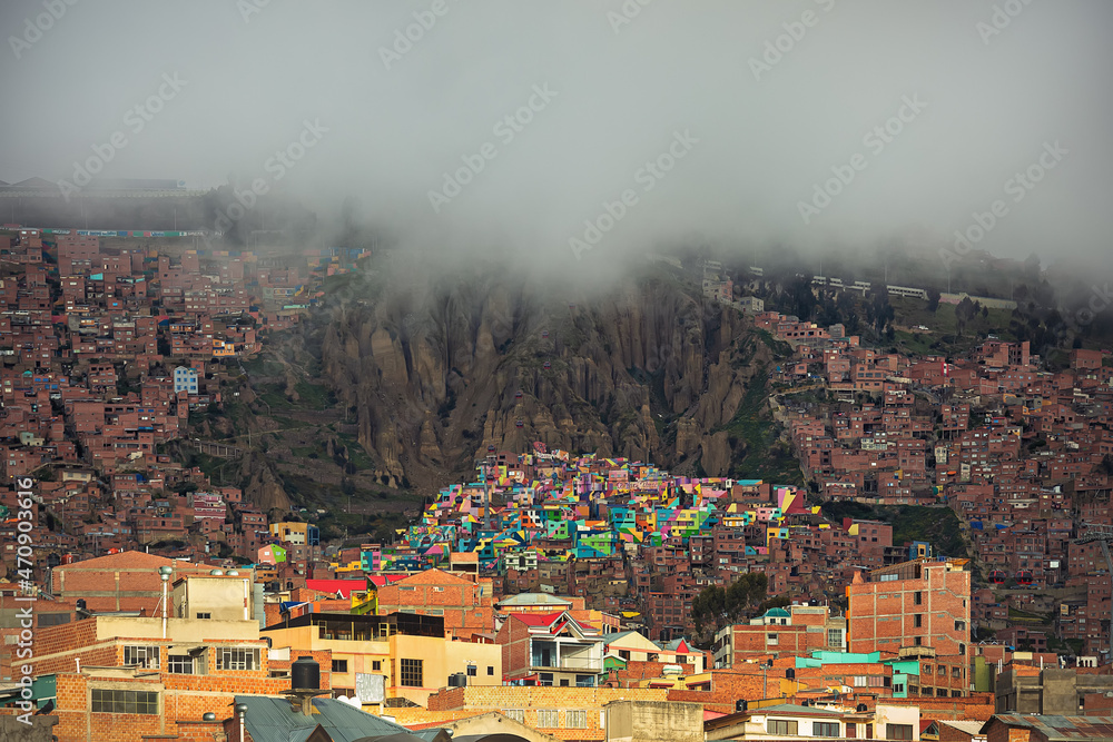 Traditional bolivian houses on the hills in La Paz city, Bolivia