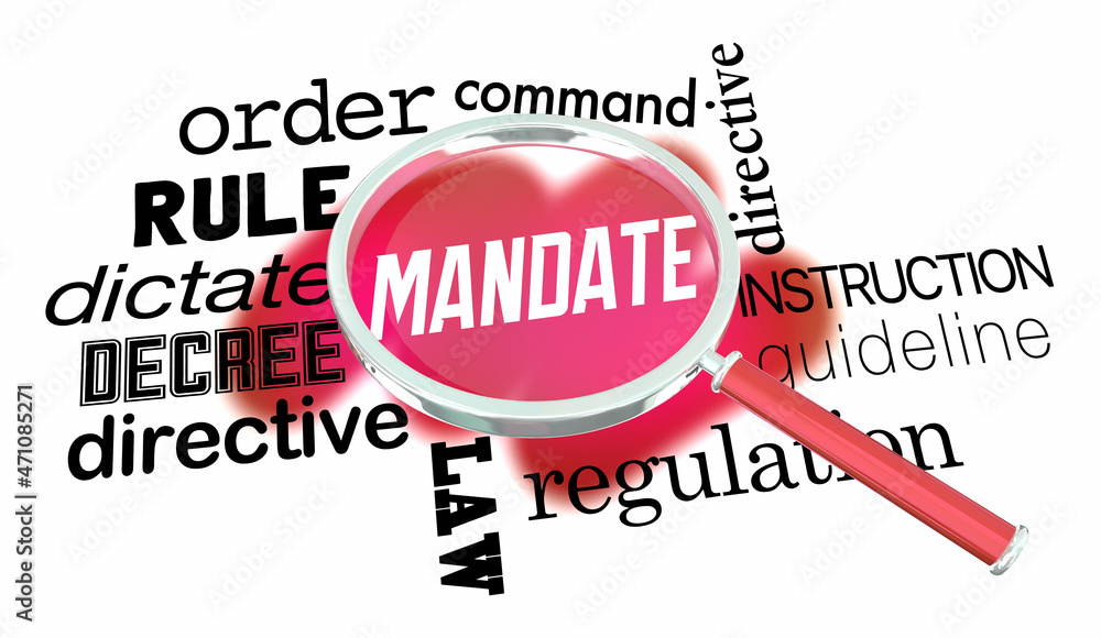 Mandate Magnifying Glass Search Find New Regulation Rule Law 3d Illustration