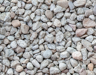 Small light gray, white stone outdoors garden road pavement structure from above, simple high res background texture material closeup, top view, lots of small sized stones. Natural backdrop, nobody