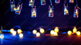 Bright Christmas background with copyspace. selective focus . Garland lights at night