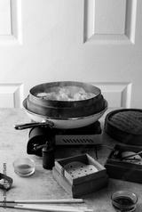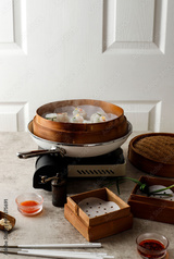 Steaming and Hot Chinese Dumplings (Dimsum) in Bamboo Steamer