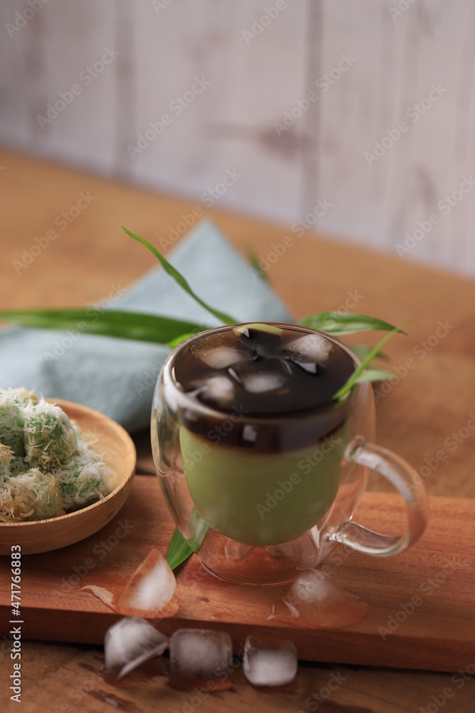 Klepon Latte, Sweet Rice Ball Stuffed with Palm Sugar ad Topping of Green Latte