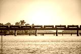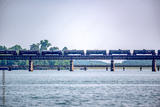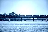 locomotive train bridge with train crossing lake