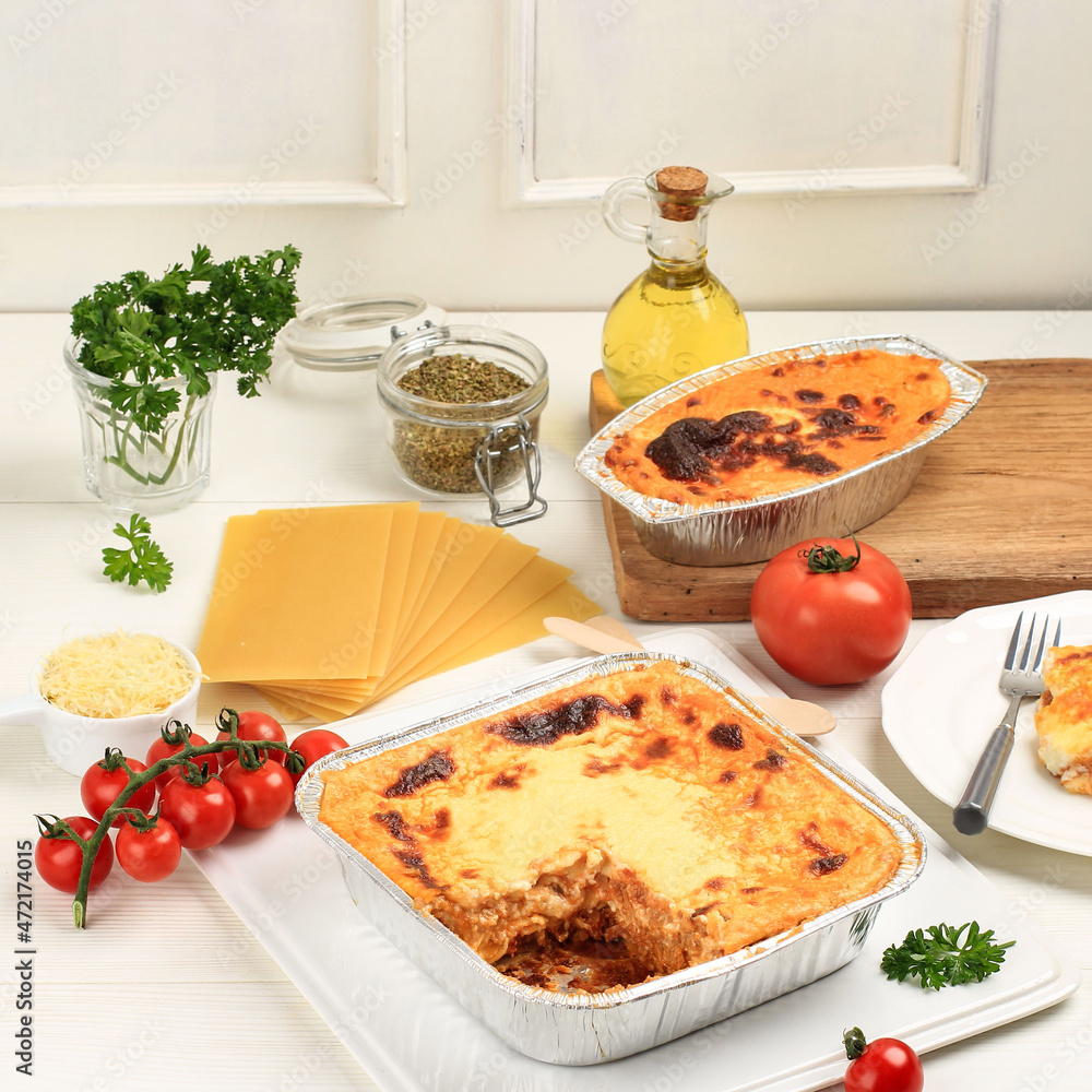 Lasagna, Italian Food Pasta on Alumunium Baking Dish