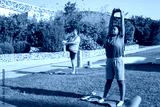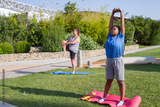 Plus size women doing sports. Chubby women of different nationalities in sport clothes exercising at park. Sport, body positive concept
