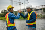 Teamwork Engineer and businessman handshake at construction site