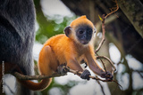 The orange colored baby of the Suntaic Silvered Leaf Monkey.