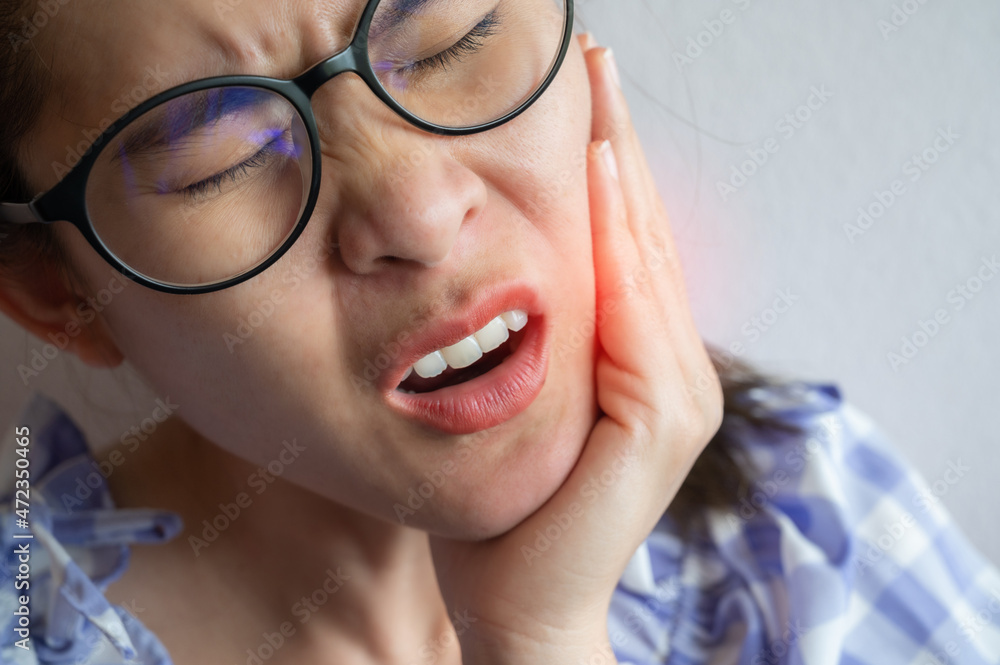 Close up of Asian woman having suffering from toothache. Toothaches can be caused by something happening to your teeth or gums.