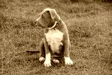 puppy sitting on the grass, American bully puppy dog, Pet funny and Cute