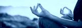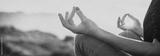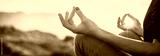 woman doing yoga in beautiful nature background at sunset or sunrise, focus on hand - mindfulness and mental health and hygiene background
