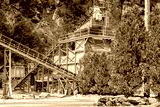 Mountain City, Tennessee, USA city with industrial factory coal conveyor belt power plant exterior architecture with elevator lift in Appalachian mountains