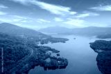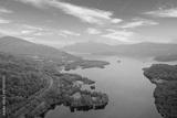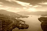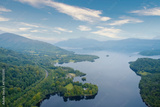 Loch Lomond aerial view during sunrise near Tarbet