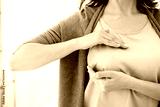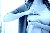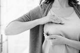Caucasian woman doing palpation of her breast for prevention breast cancer. Self-checking medicine for female. World cancer day