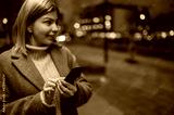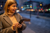 Portrait of young woman using phone while waiting the bus outdoors.