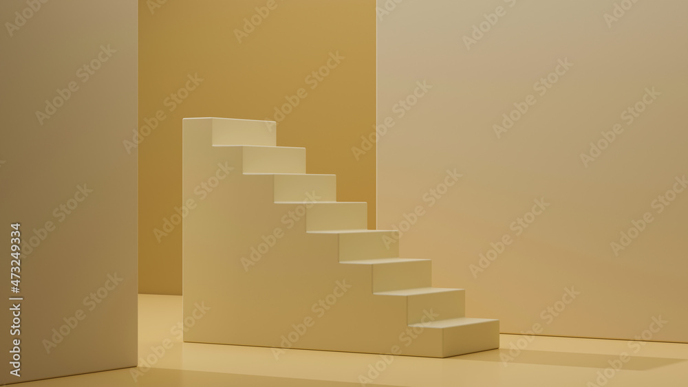 Minimal yellow stairs with geometrical form on yellow pastel colour background.