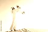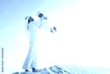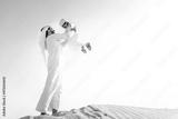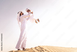 Arabian man and son playing in the desert