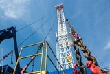Mobile drilling rig close-up. Drilling and servicing oil and gas wells