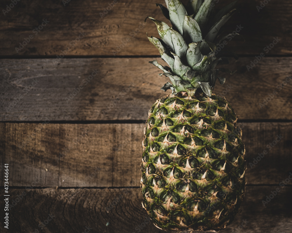 Pineapple on rustic wood background