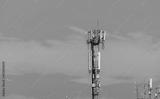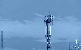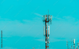 Telecommunication tower with blue sky background. Radio and satellite pole. Communication technology. Telecommunication industry business. Mobile or telecom 4g and 5g network. Telecommunication pylon.