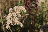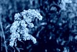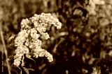 Canadian goldenrod flowers with seeds on autumn season. Withered Solidago canadensis flowers