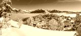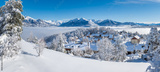 Laye winter ski resort covered in fresh snow with panoramic view of the mountains of Ecrins National Park. Champsaur valley in the French Alps. Hautes-Alpes, France