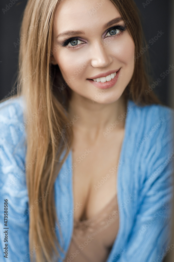 Closeup portrait of a smiling woman indoor