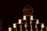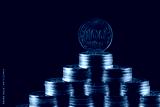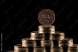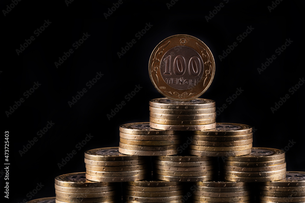100 Kazakhstani tenge coins stacked in the form of a pyramid