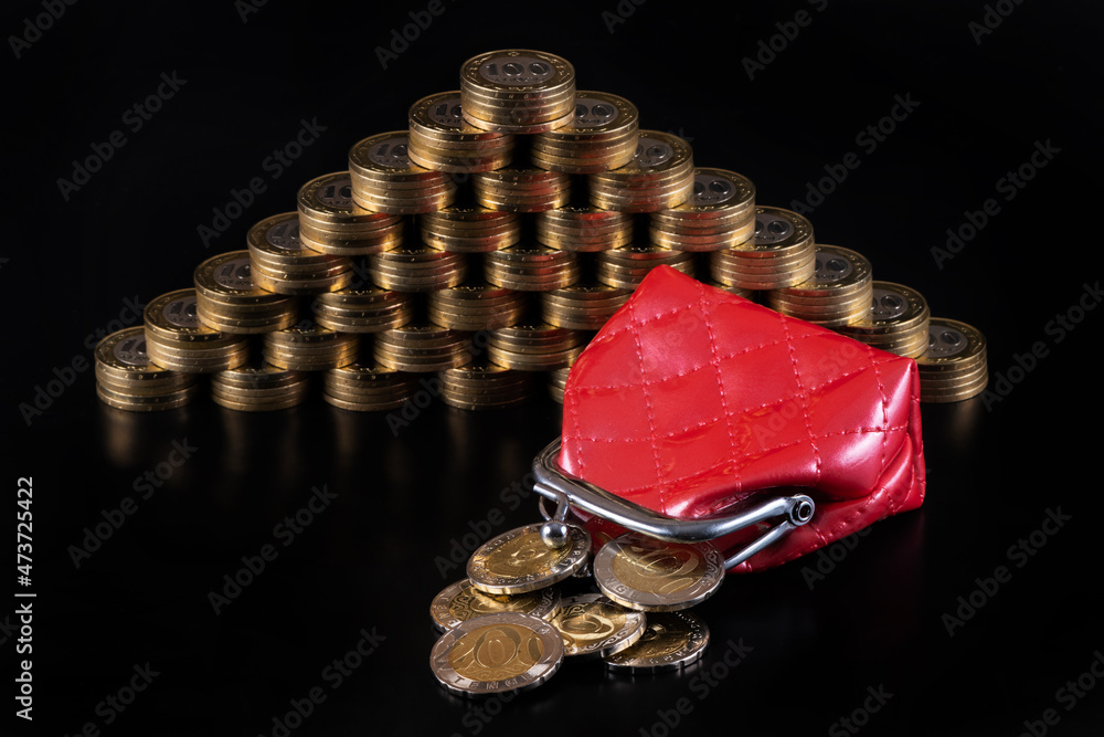 100 Kazakhstani tenge coins stacked in the form of a pyramid