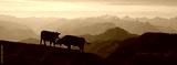 Silhouettes of two cows on top of Mount Rigi, Switzerland.