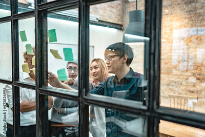 Business asian people meeting at office and use post it notes to plan and share idea. Brainstorming concept